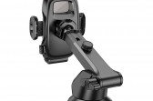Universal car holder mounted to the dashboard or windshield. Adjustable arm with a movable head with a range of 360° movement allows you to perfectly adjust the position of the device to your needs, vertically or horizontally.