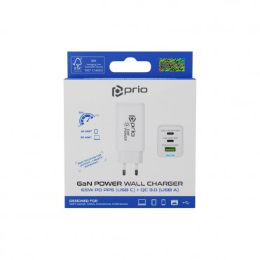Supports 65W USB Power Delivery (PD), 55W PPS, 18W Quick Charge & Huawei Fast Charge protocols; automatically detects the required power output.
