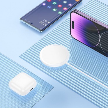 2in1 wireless charger. It allows for inductive charging of the phone and TWS headsets. Supports charging with MagSafe.