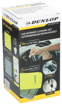 DUNLOP auto tīrīšanas/uzkopšanas komplekts (2gb mikrošķiedru lupatiņas+40gb mitrās salvetes)