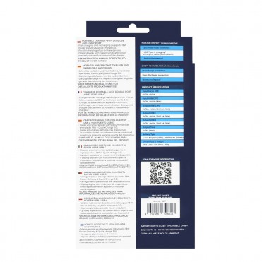 Output USB A (2): 22.5W (4.5V/5A, 5V/3A, 9V/2.25A, 12V/1.67A)