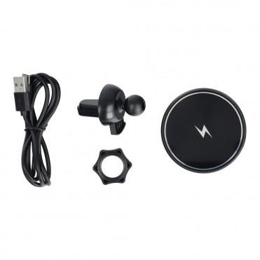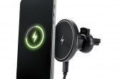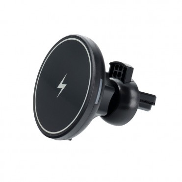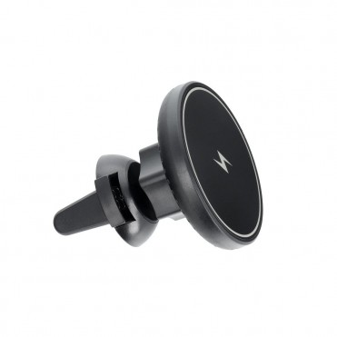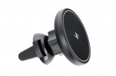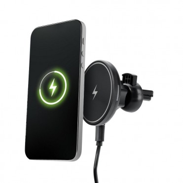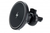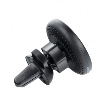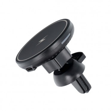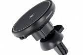 Automašīnas turētājs ar bezvadu uzlādi. Iespraužams uz ventilācijas režģī. Tas ļauj droši lietot viedtālruni braukšanas laikā.