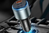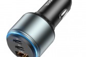 95W 3 portu auto lādētājs (USB A+ USB C*2), C1 ports atbalsta 65W ātro uzlādi, savietojams ar macbook, notebook, laptops un planšetēm