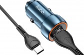 Hoco auto lādēājs 2:1 Type C + USB QC3.0 20W + Type A uz C kabelis