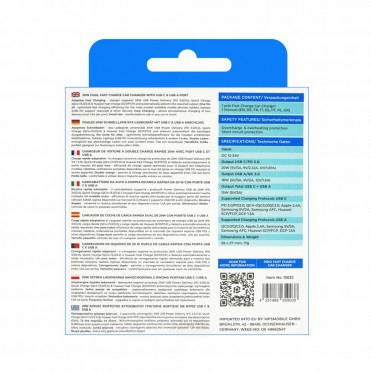 Output USB A/QC 3.0; : 18W (5V/3A, 9V/2A, 12V/1.5A)