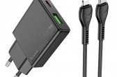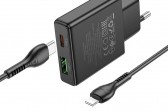 HOCO N38 slim charger tīkla lādētājs USB A+ USB C with Type C to Lightning cable PD QC3.0 0.3A 20W black