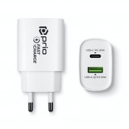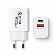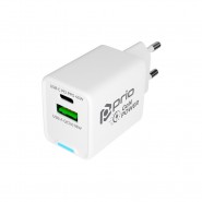 prio Fast Charge Wall Charger 25W PD PPS (USB C)+QC 3.0 (USB A) white