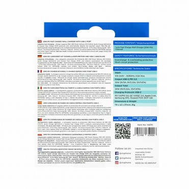 Output USB-C / PD 3.0: 20W (5V3A 9V2.22A 12V1.67A)