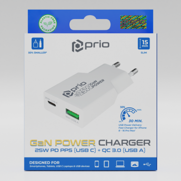 Output USB C/PPS/PD 3.0: 25W (5V/3A, 9V/2.27A) PPS (3.3-5.9V/3A, 3.3-11V/2.25A)