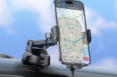 Car holder with wireless charging. Mounted to the windshield/cockpit. It allows you to safely use your smartphone while driving.