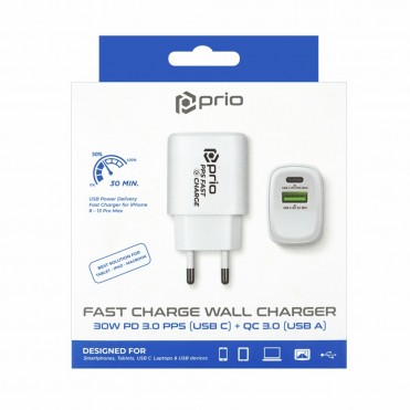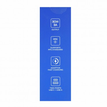 Output USB-C / PD 3.0: 30W (5V/3A, 9V/3A, 12V/2A, 15C/2A, 20V/1.5A, 30W PPS (3.3-11V/3.0A))