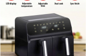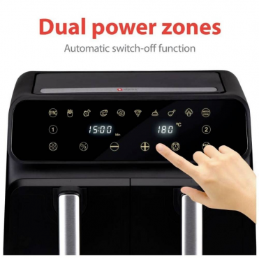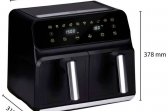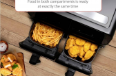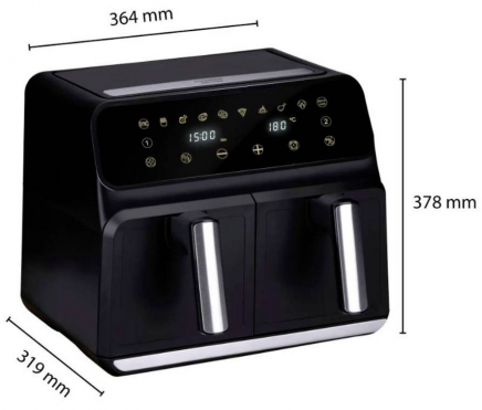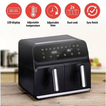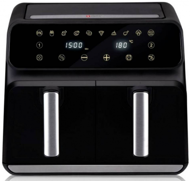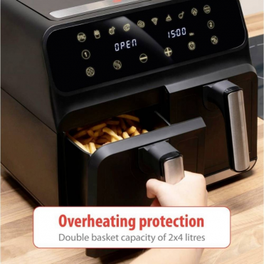 - Double airfryer with a 2 metal trays with 4 litre capacity each, 8 liters in total