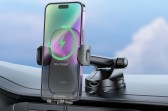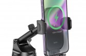Car holder with wireless charging. Mounted to the windshield/cockpit. It allows you to safely use your smartphone while driving.